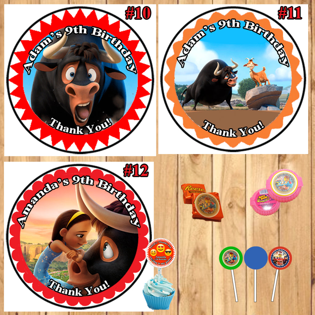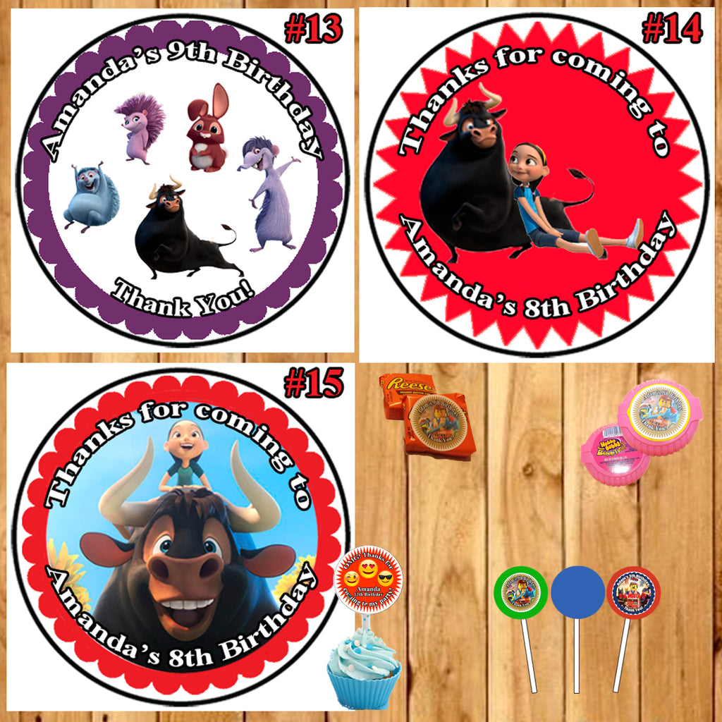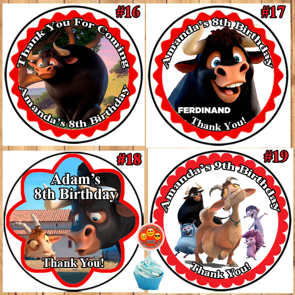 Ferdinand Birthday Round Stickers Printed 1 Sheet Cup Cake Toppers Favor Stickers Personalized Custom Made