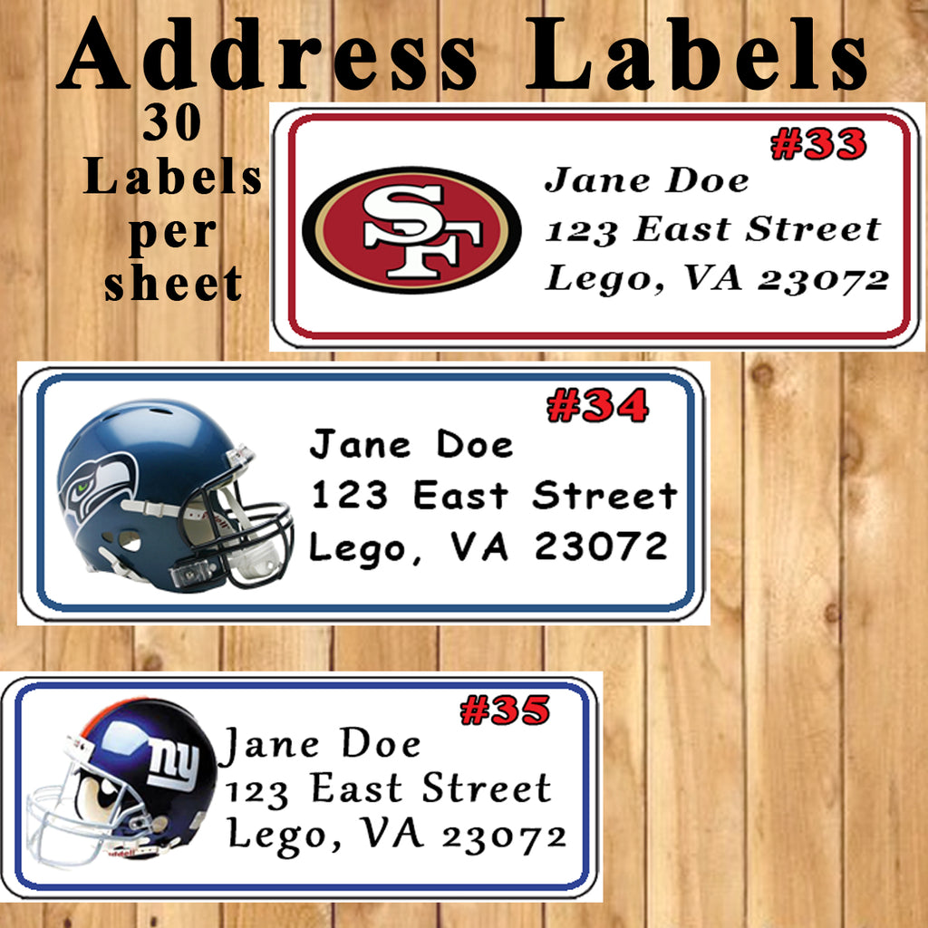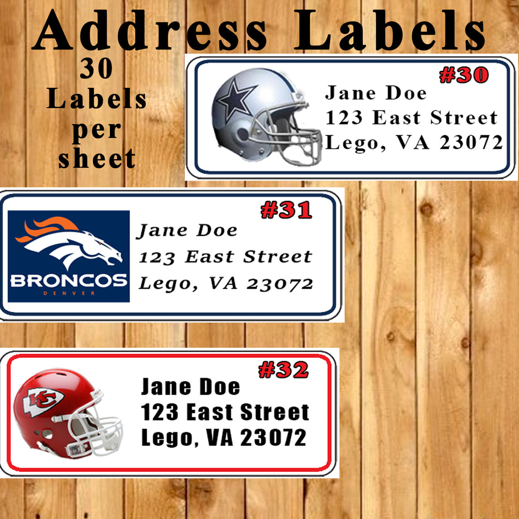 Football NFL Birthday Favor Water Bottle Address Labels Stickers Printed Personalized Custom Made