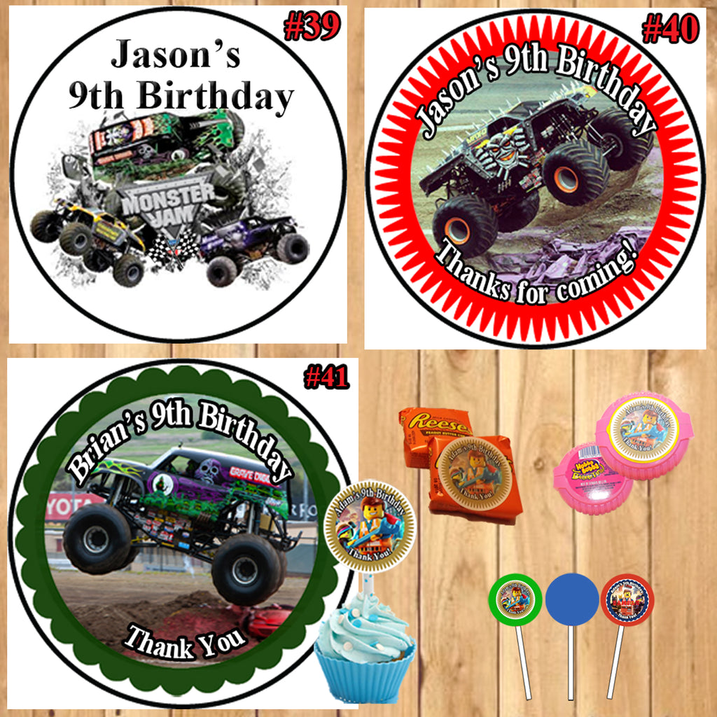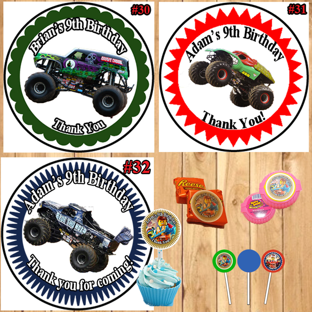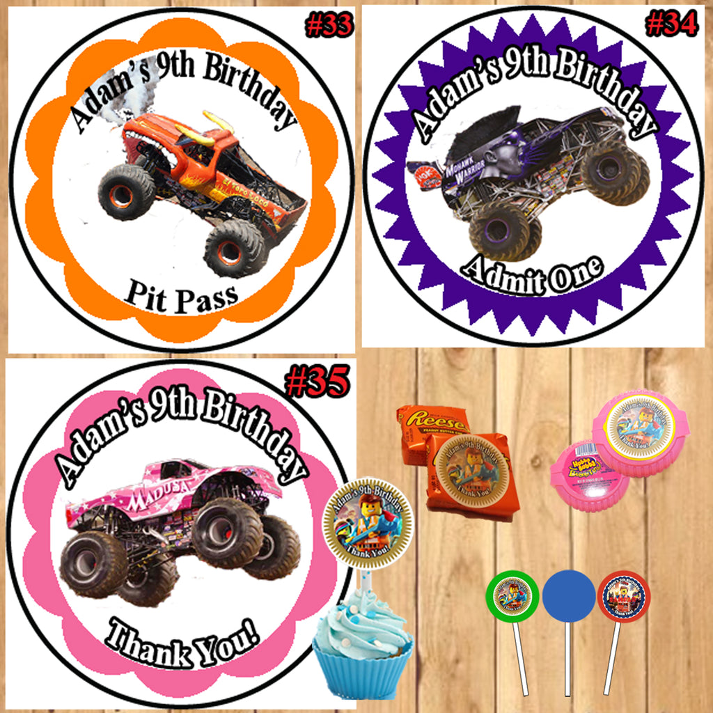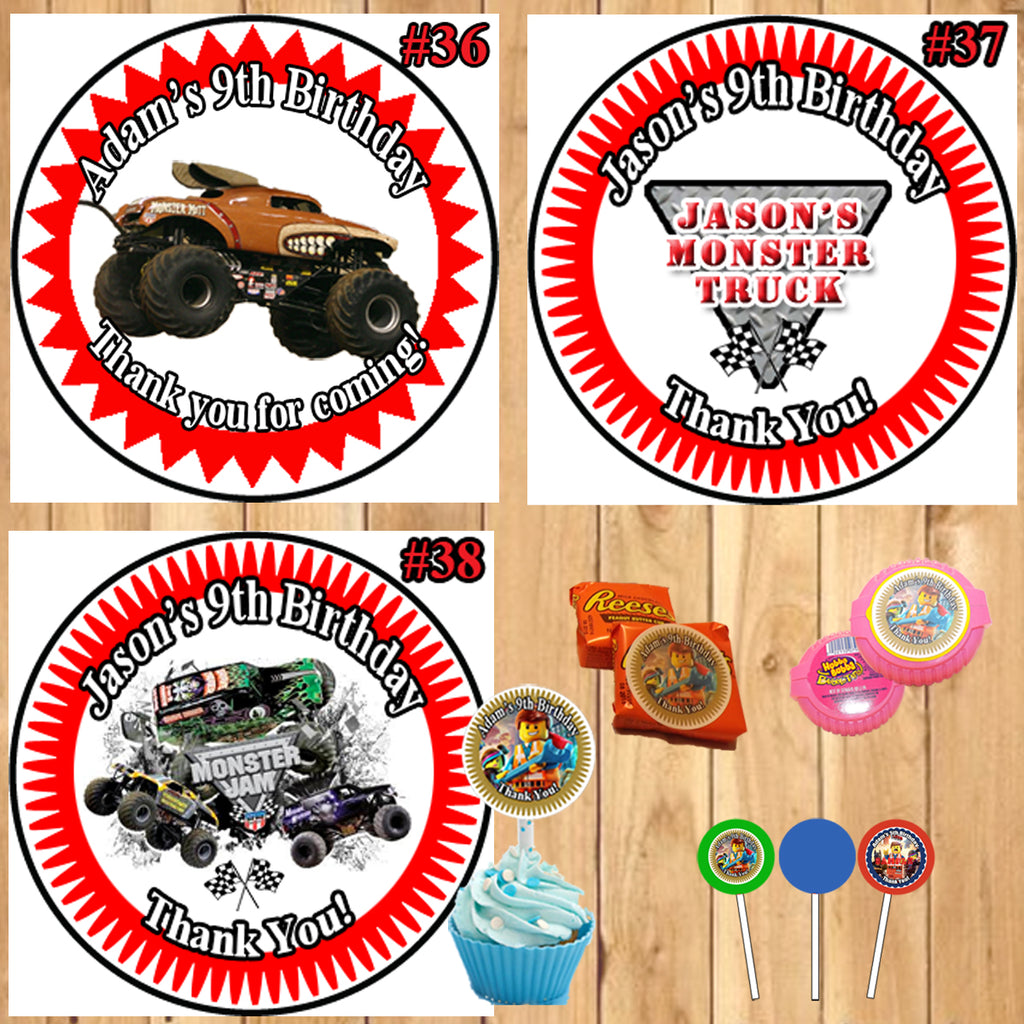 Monster Truck Monster Jam Birthday Round Stickers Printed 1 Sheet Cup Cake Toppers Favor Stickers Personalized Custom Made