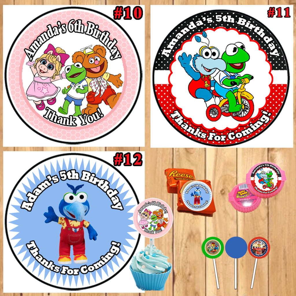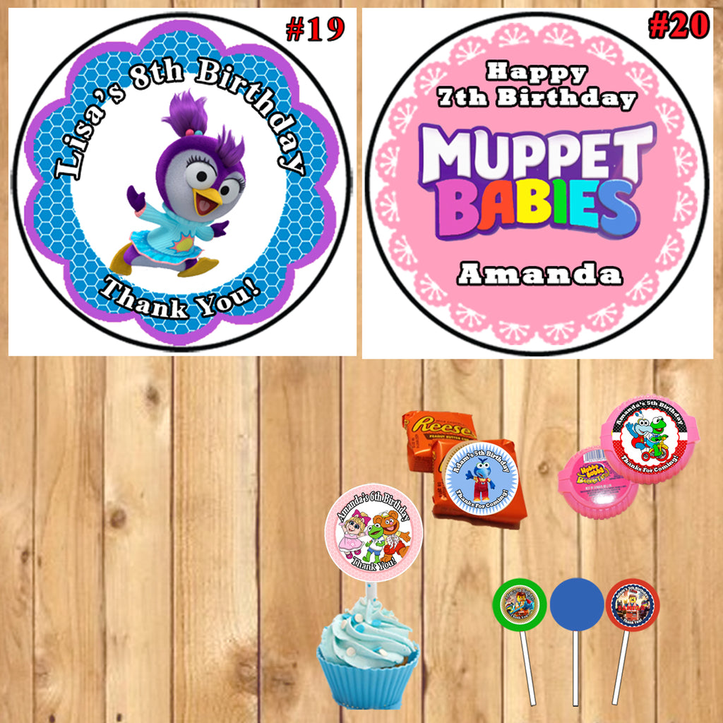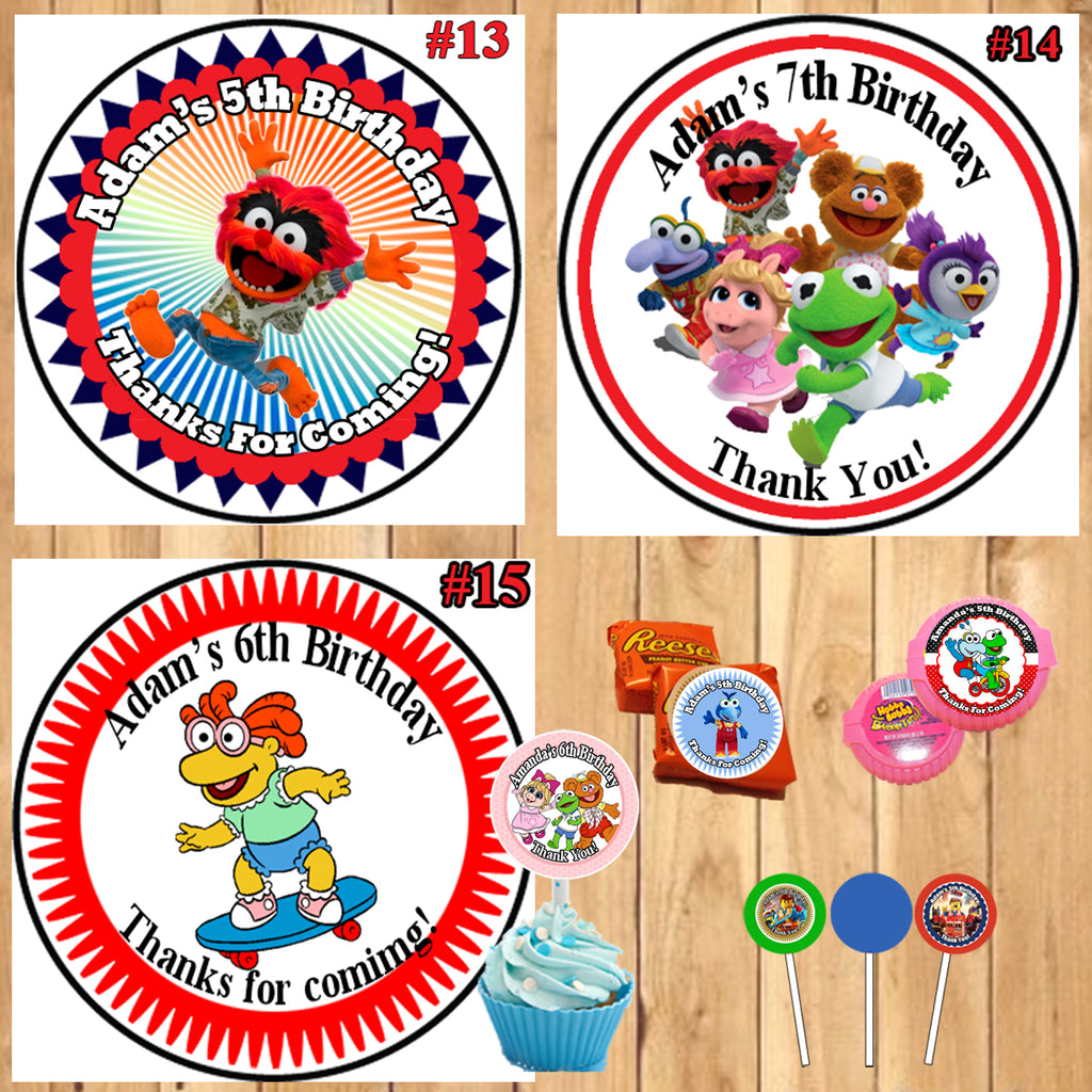 Muppet Babies Birthday Round Stickers Printed 1 Sheet Cup Cake Toppers Favor Stickers Personalized Custom Made