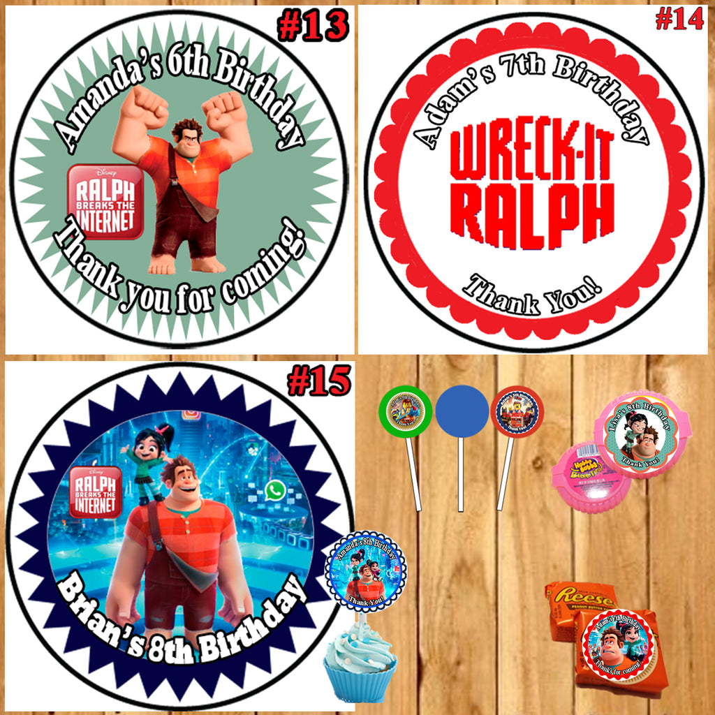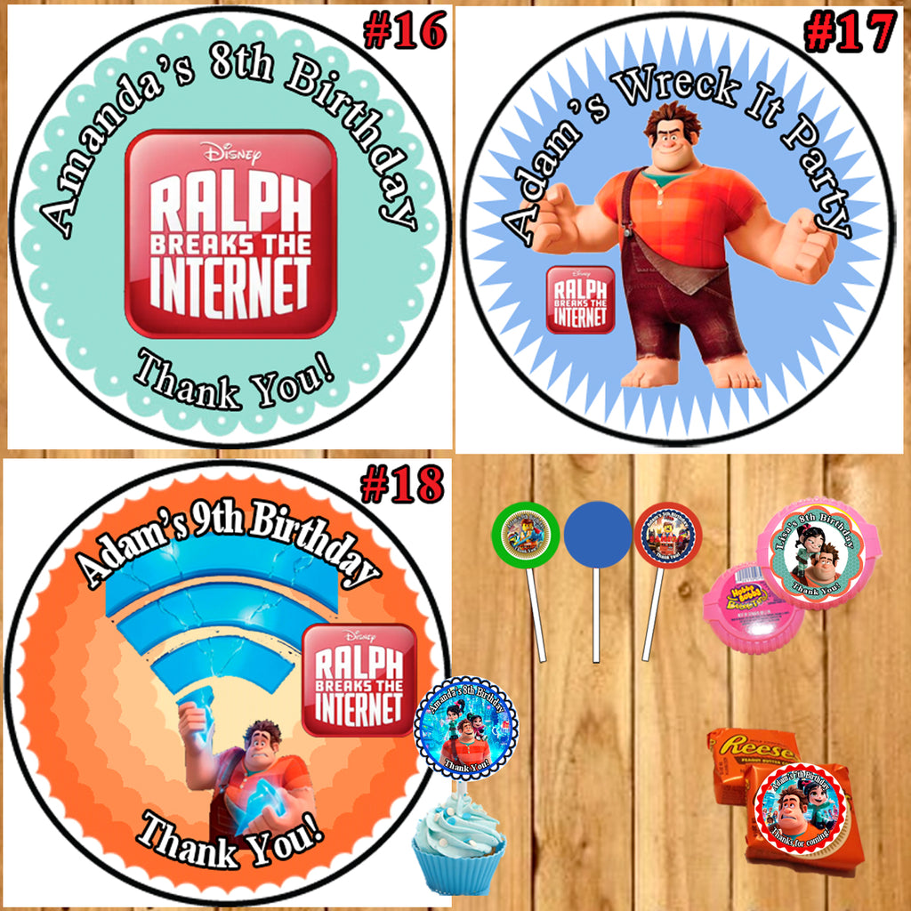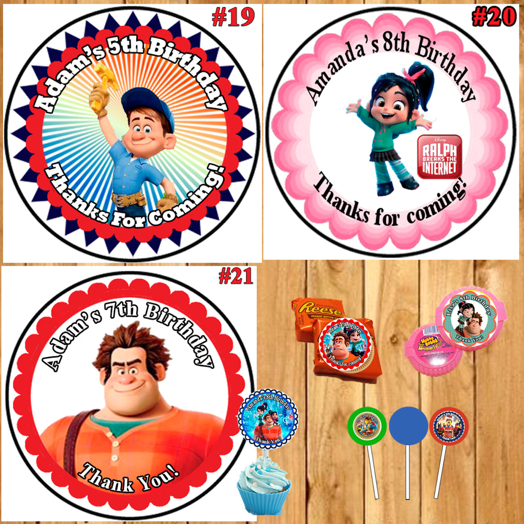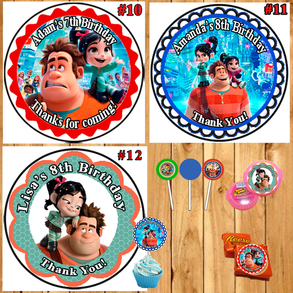 Ralph Breaks The Internet Birthday Round Stickers Printed 1 Sheet Cup Cake Toppers Favor Stickers Personalized Custom Made