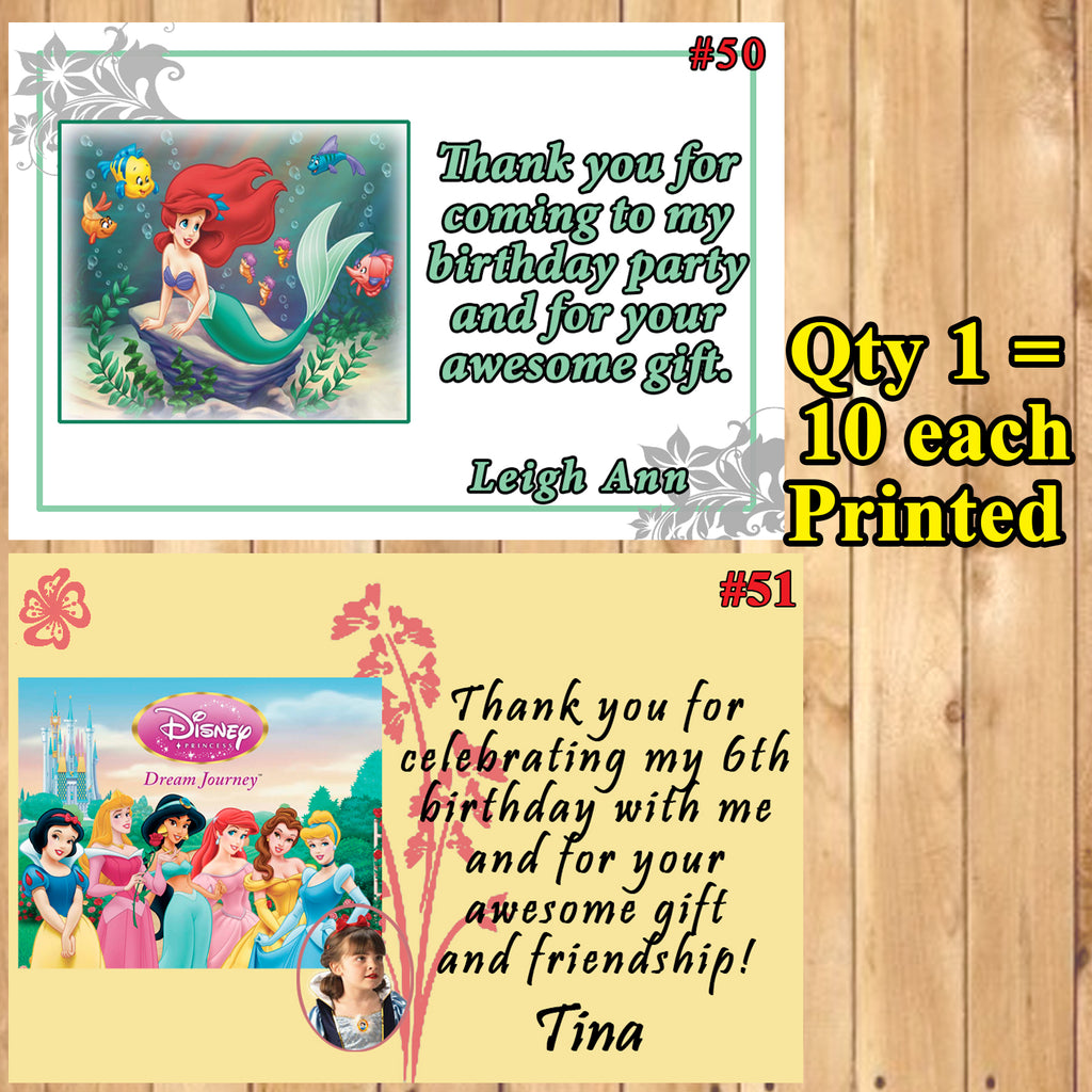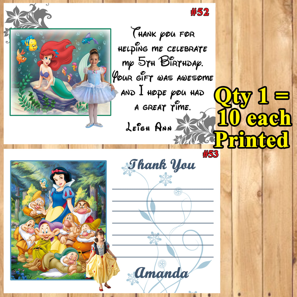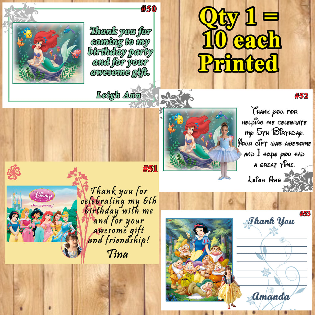 Princess Birthday Thank You Cards 10 each With or Without Env Printed Personalized Custom Made