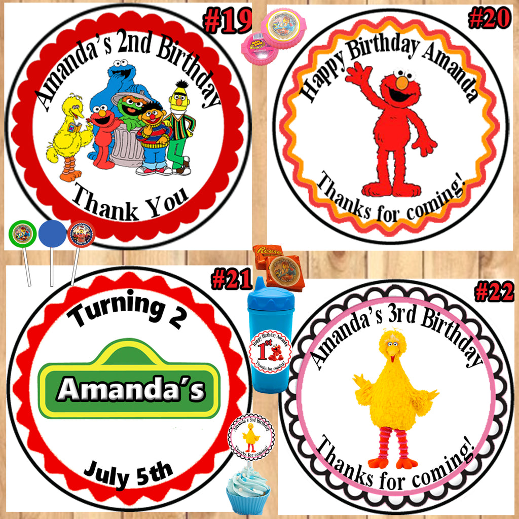 Sesame Street Birthday Round Stickers Printed 1 Sheet Cup Cake Toppers Favor Stickers Personalized Custom Made